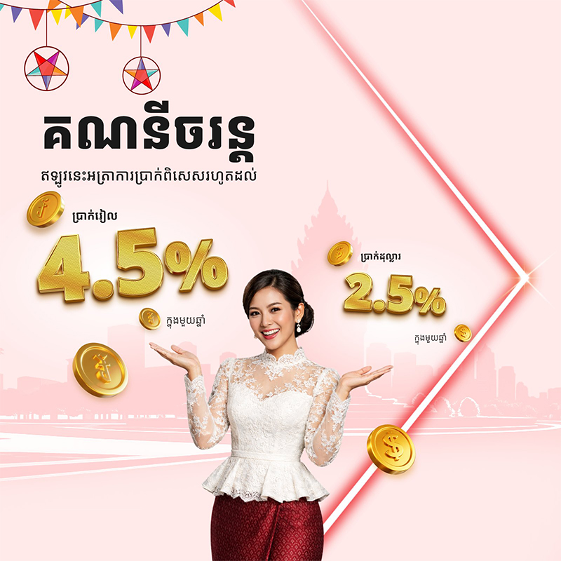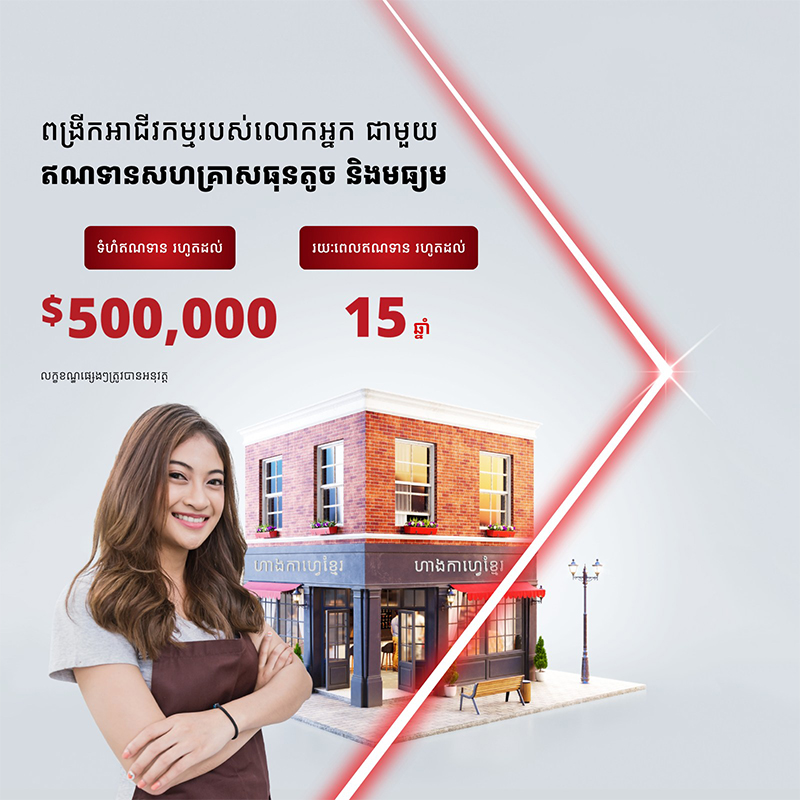 ជ្រើសរើសធនាគារល្អបំផុតនៅកម្ពុជាសម្រាប់អាជីវកម្ម ជាមួយនឹងសេវាធនាគារដ៏សម្បូរបែប ដែលតែងតែច្នៃតាមតម្រូវការរបស់អ្នកជានិច្ច។